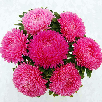 «Балун» это настоящий воздушный шар! Серия превосходит все махровые астры, ее степень махровости неописуема. Шаровидные соцветия диаметром 12-15 см из густостоящих лепестков ладьевидной формы в которые не проникают, а скатываются капли дождя! Соцветия различных ярких окрасок, высота растений 50-60 см, прочные побеги (6-8 шт) долго стоят в воде, до двух недель – без проблем!