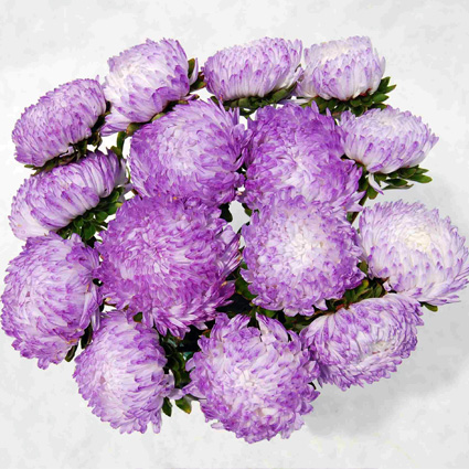 Пионовидная астра относится к одной из наиболее богатых разнообразием окрасок и оттенков серий астр. В ней насчитываются 20 сортов! Соцветия состоят из большого количества широких язычковых, плотно прижатых и загнутых в середину лепестков. Растения пирамидальной формы, высотой 65-75 см. Диаметр цветков 8-10 см. Прекрасно подходят для срезки, поскольку разветвление растений начинается снизу. С одного растения можно получить до 8-10 цветоносов. Пионовидные астры в закрытом грунте можно выращивать весной и осенью