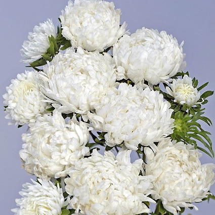 Пионовидная астра относится к одной из наиболее богатых разнообразием окрасок и оттенков серий астр. В ней насчитываются 20 сортов! Соцветия состоят из большого количества широких язычковых, плотно прижатых и загнутых в середину лепестков. Растения пирамидальной формы, высотой 65-75 см. Диаметр цветков 8-10 см. Прекрасно подходят для срезки, поскольку разветвление растений начинается снизу. С одного растения можно получить до 8-10 цветоносов. Пионовидные астры в закрытом грунте можно выращивать весной и осенью