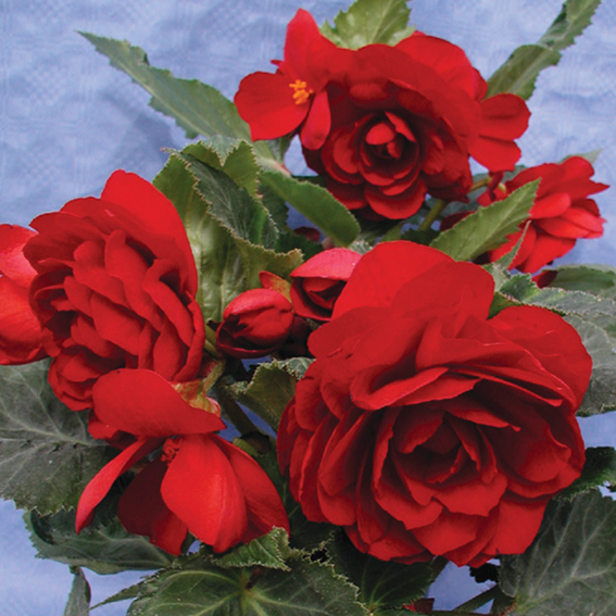 Группа популярных классических сортов. Растения высотой 30–35 см, мощные, с толстыми побегами, обильно цветущие, с крупными камелиевидными цветками, густомахровые. Данные сорта оптимальны для выращивания в полутени, однако, при обильном, регулярном поливе пригодны и для открытых солнечных участков. Обильное цветение продолжается до первых морозов. Растения образуют клубни, которые можно сохранять до следующего сезона.