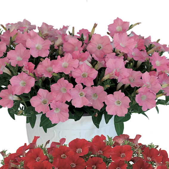 Самый раннецветущий и совершенно новый гибрид на цветочном рынке. Габитус растения и диаметр цветка напоминает калибрахоа: тонкие длинные ниспадающие побеги, усыпанные мелкими цветами и достигающие в длину около 1 метра, стремятся вверх и в стороны. Середина куста никогда не бывает пустой. Цветки имеют ген мужской стерильности, быстро восстанавливаются после дождей. Высокая устойчивость к повышенным и пониженным температурам.