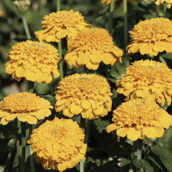 Циннии с цветками скабиозы. Украшенные оборками головки цветов делают Синдереллу  незаменимой в саду. По мере развития сезона и снижения температуры будет появляться все больше махровых цветков.