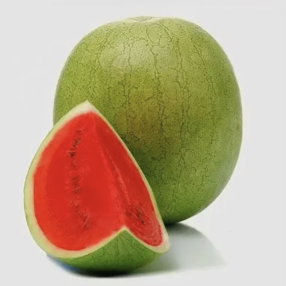 Крупный плод округло-овальной формы 8-10 кг. Светло-зелёный цвет коры и ярко-красный цвет мякоти.